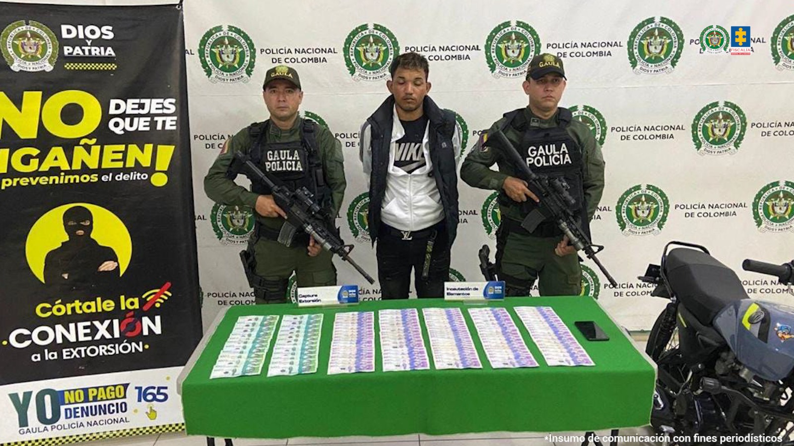 La víctima denuncio el caso ante las autoridades, lo que llevó a una operación del Gaula de la Policía Nacional para capturar al delincuente mediante una entrega programada del dinero.