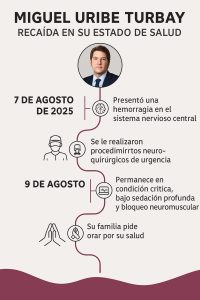 La familia del senador, que ha acompañado de cerca su proceso médico desde el atentado ocurrido el pasado 7 de junio en Bogotá, hizo un llamado a los colombianos para que se unan en oración por su recuperación. “En estos momentos de incertidumbre, agradecemos las muestras de solidaridad y pedimos elevar una plegaria por la vida de Miguel”, expresaron en un mensaje difundido por sus allegados.