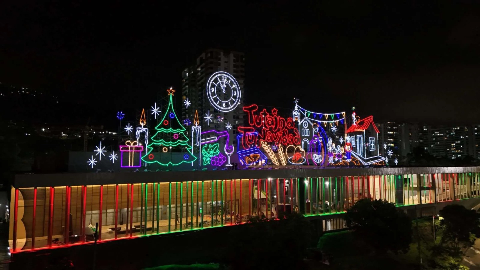 Bajo el lema “Tutaina, Tu Navidad”, el evento busca reconectar a las familias con los símbolos que han marcado generaciones: la estrella, el pesebre, el abrazo, el deseo compartido. La tarjeta, instalada sobre la fachada principal de Neomundo, no solo deslumbra por su tamaño, sino por su mensaje: ser luz para los demás.