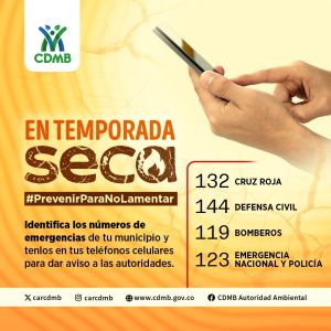 En el área de influencia de la CDMB, la disminución de lluvias podría derivar en aumento de temperaturas, incendios de cobertura vegetal, desabastecimiento de agua potable y heladas en zonas altas. Por ello, la entidad hace un llamado a la comunidad a mantenerse informada a través de los boletines del IDEAM y a reportar cualquier emergencia ambiental al Grupo Élite Ambiental (GEA).