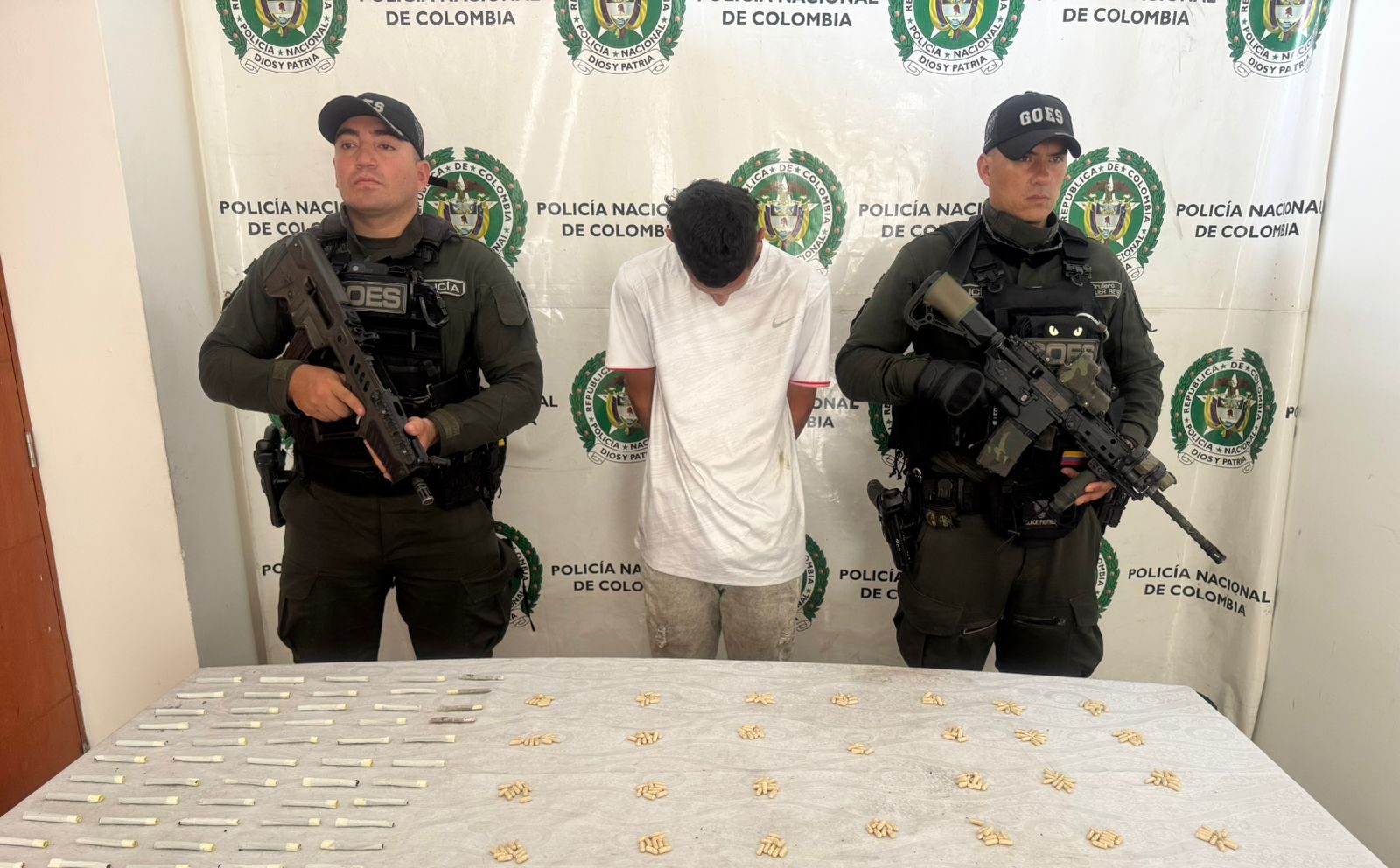 En un nuevo golpe contra las redes del microtráfico que operan en la ciudad, uniformados del Grupo de Operaciones Especiales (GOES) de la Policía Metropolitana de Bucaramanga capturaron a Ronny García, conocido como alias “Yuliano”, de 23 años, por el delito de tráfico, fabricación o porte de estupefacientes.