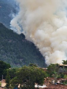 Las llamas, que comenzaron al mediodía, se han propagado rápidamente por la zona montañosa, afectando cultivos, vegetación nativa y poniendo en riesgo viviendas rurales. Organismos de socorro, incluyendo el Cuerpo de Bomberos Voluntarios, brigadas comunitarias y la Defensa Civil, trabajan intensamente para contener el fuego, que se ha visto agravado por las altas temperaturas y los fuertes vientos.