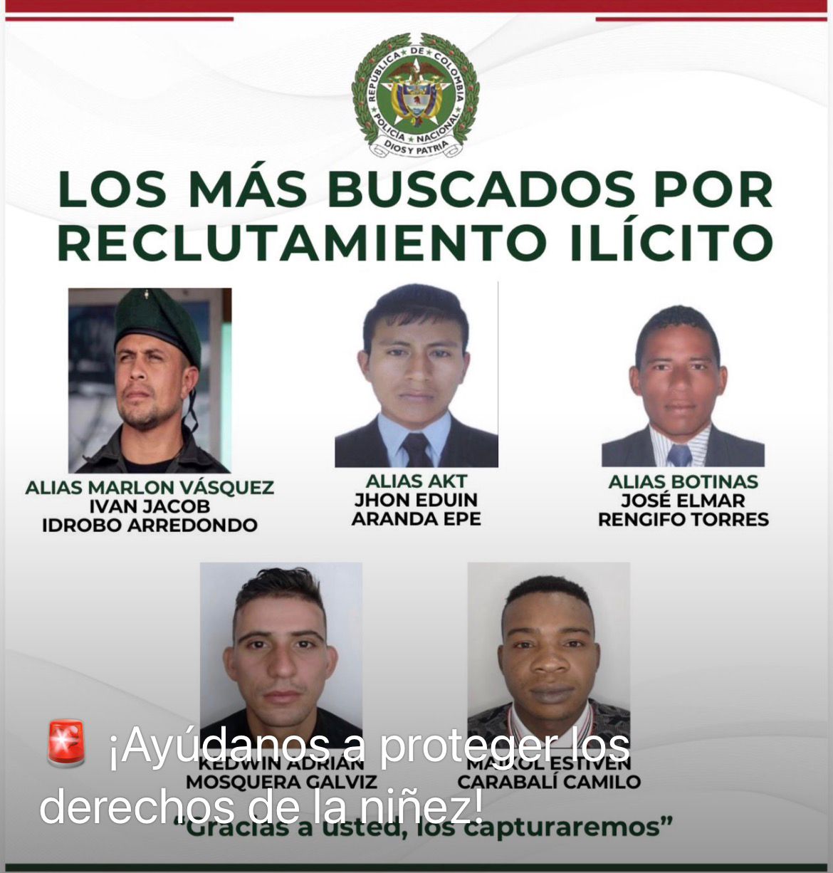 El cartel, difundido desde la sede policial en Barrancabermeja, incluye los rostros y alias de individuos vinculados a estructuras armadas ilegales que operan en la región y que estarían involucrados en el reclutamiento forzado de menores para actividades criminales. Este delito, considerado una grave violación a los derechos humanos y al Derecho Internacional Humanitario, vulnera de forma irreversible la vida, la libertad y el desarrollo de la niñez.