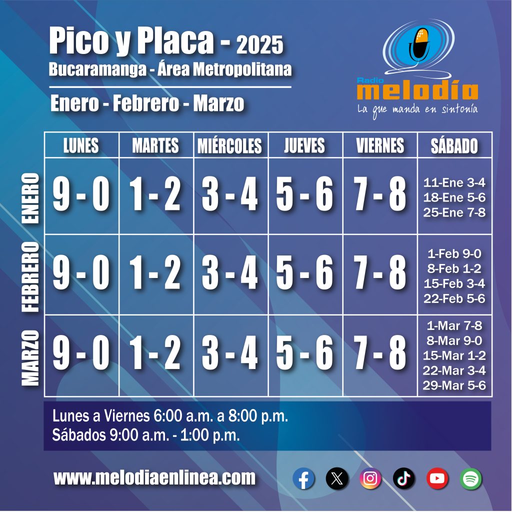 Martes 7 de enero inicia la rotación del pico y placa en el área metropolitana de Bucaramanga para el primer trimestre de 2025
