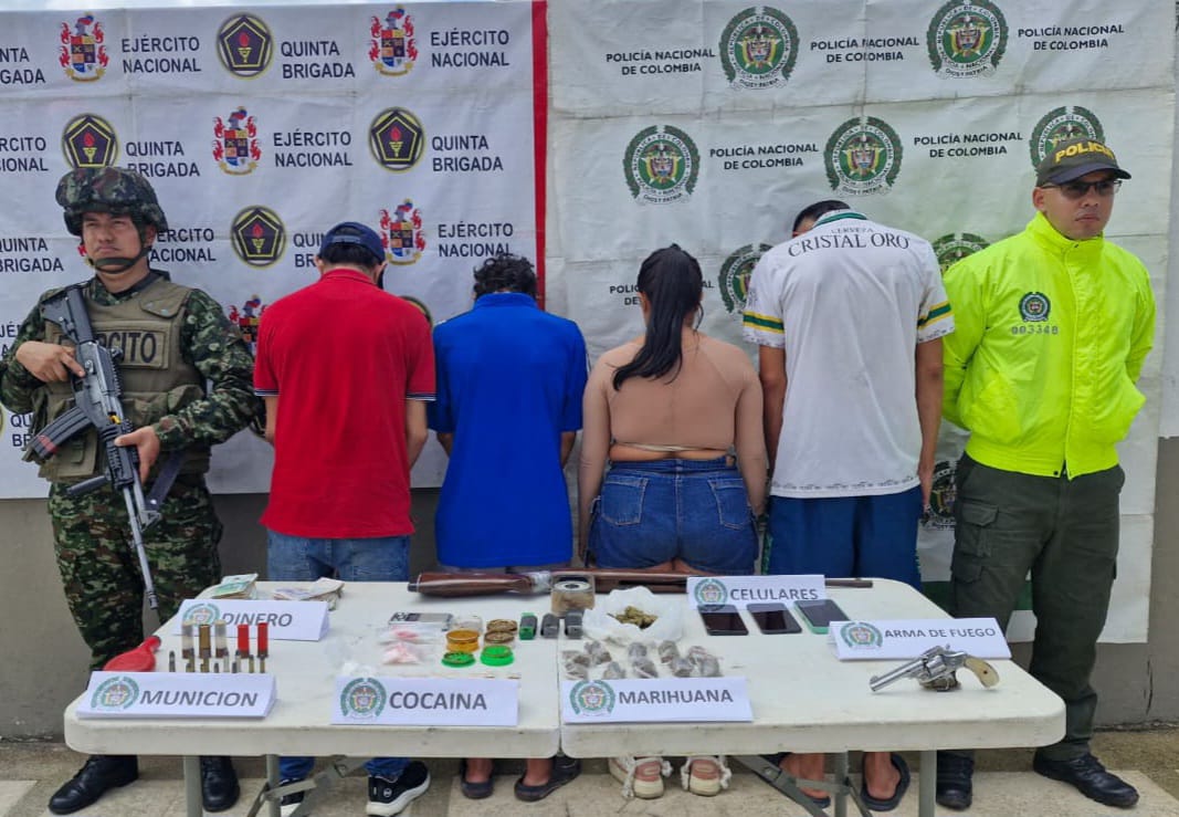 En una acción conjunta entre la Policía Nacional, el Ejército y la Fiscalía 2 Vida de Barrancabermeja, fueron capturadas cuatro personas señaladas como principales expendedores de estupefacientes en el municipio de Lebrija. La operación se desarrolló en los barrios Pentecostés y Canta Rana, donde se realizaron dos diligencias de allanamiento que permitieron la detención en flagrancia de alias Piscingo, Keinner, Titoles y Sharol.