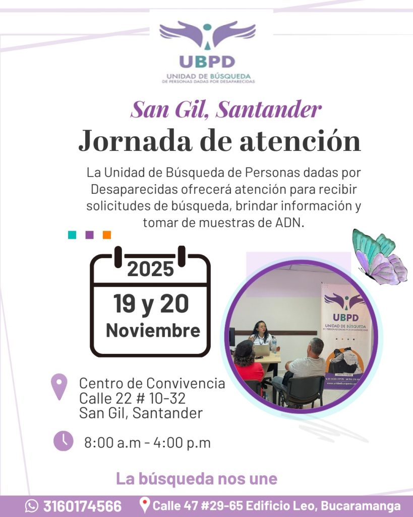 La UBPD hace un llamado respetuoso a las personas que tengan seres queridos desaparecidos y que puedan estar relacionados con esta zona, para que se acerquen y presenten sus solicitudes de búsqueda. Su participación es fundamental para avanzar en el esclarecimiento de lo ocurrido y en la construcción de paz.