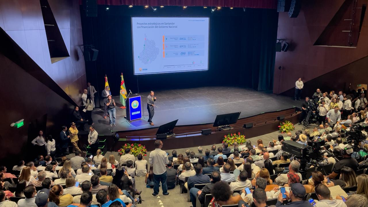 El gobernador anunció nuevos proyectos: el Centro de Eventos del Oriente Colombiano, infraestructura náutica en Topocoro, impulso a Acualago, el Centro de Gestión de Emergencias y Seguridad (CEGES), la doble calzada La Virgen–La Cemento, el Anillo Vial Externo Metropolitano, y la culminación del acueducto de Los Santos.